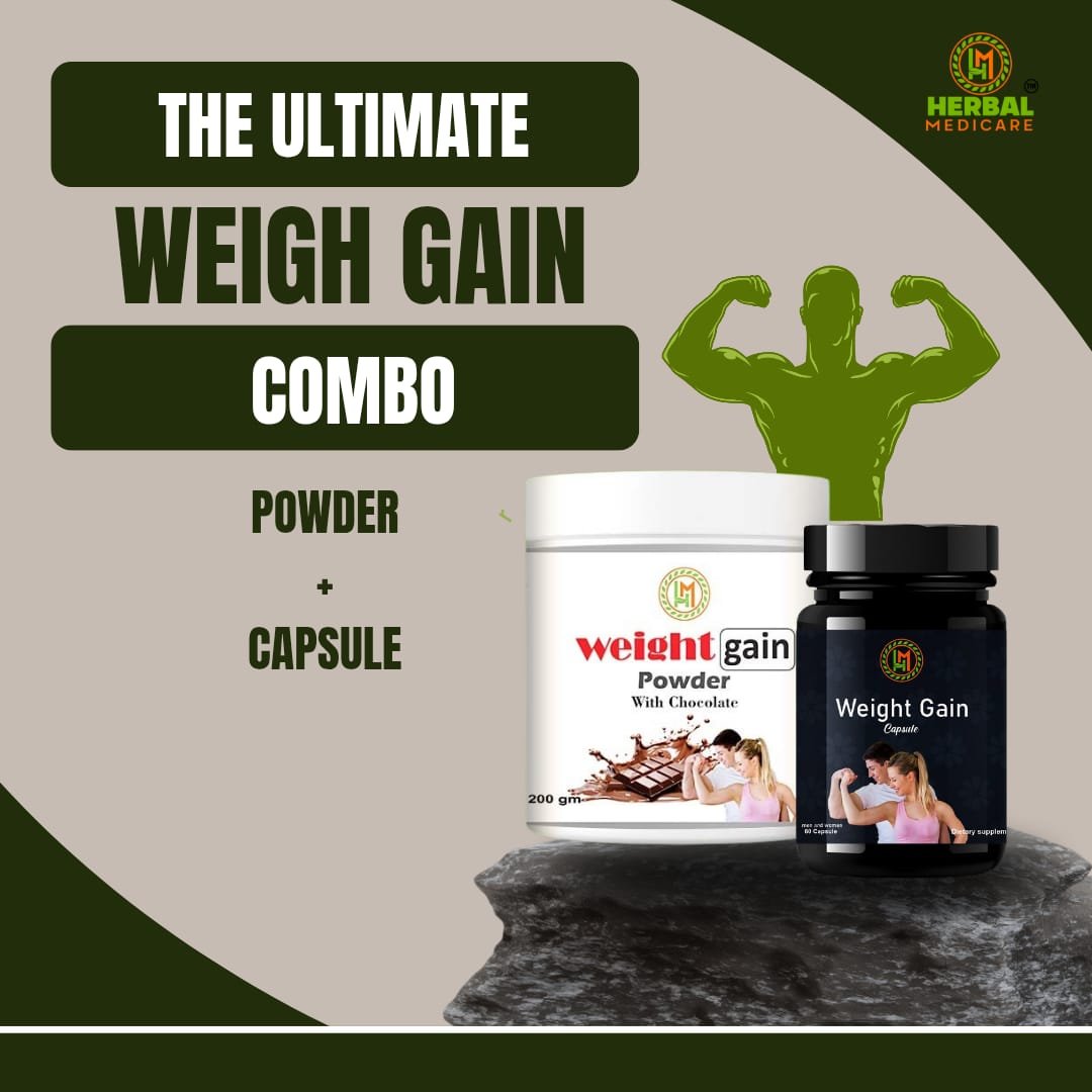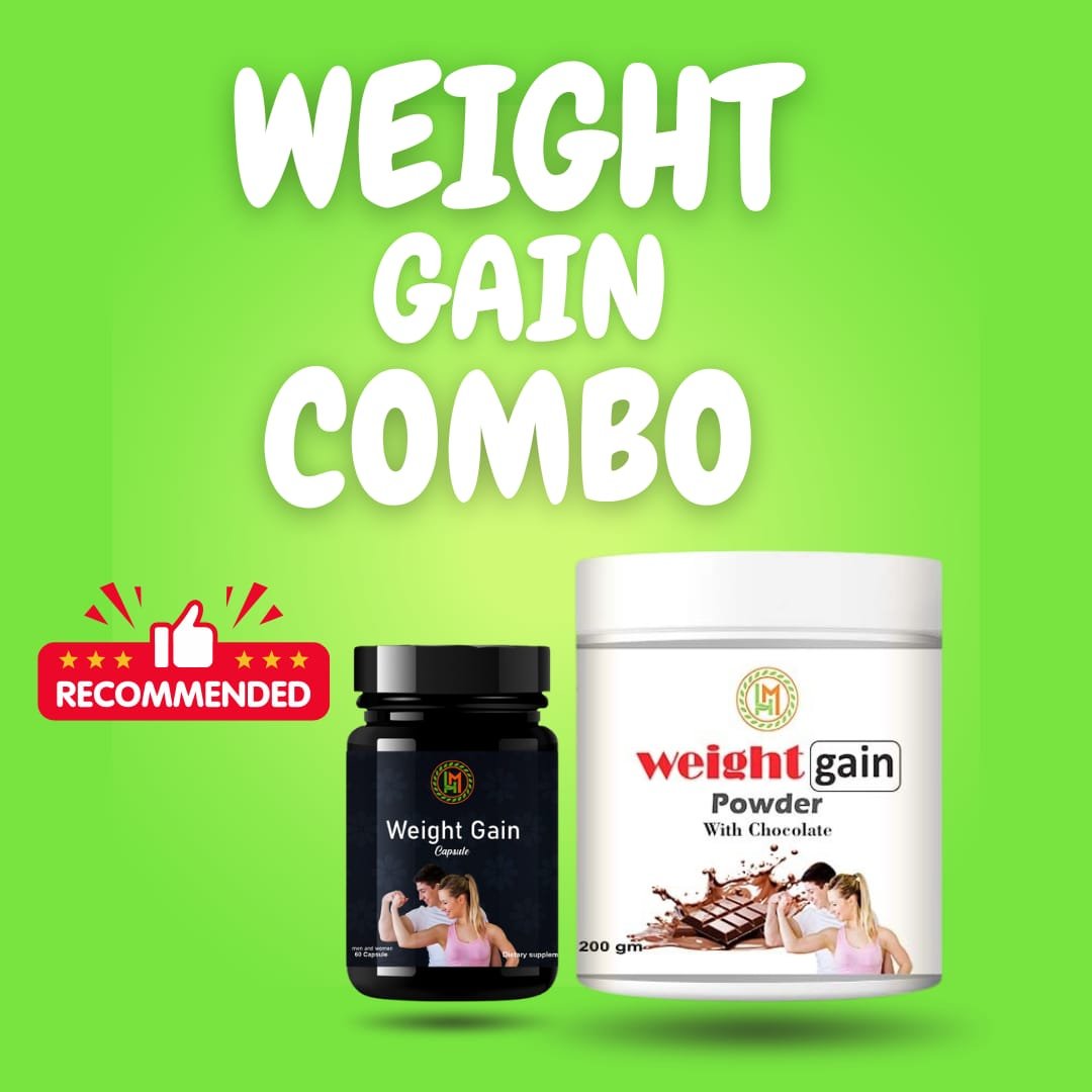 Unlock the potential for a healthier, more robust physique with our Weight Gain Combo Pack. This powerful duo of Weight Gain Capsules and weight gain  Powder is expertly designed to help you achieve your weight and muscle gain goals efficiently and effectively. For best results, use consistently for a minimum of two months.